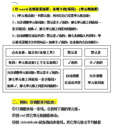 一、1秒word表格设置边距:只用表格下的[布局]-[单元格边距]按钮。