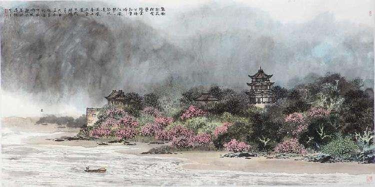 烟开兰叶香风暖,岸夹桃花锦浪生。