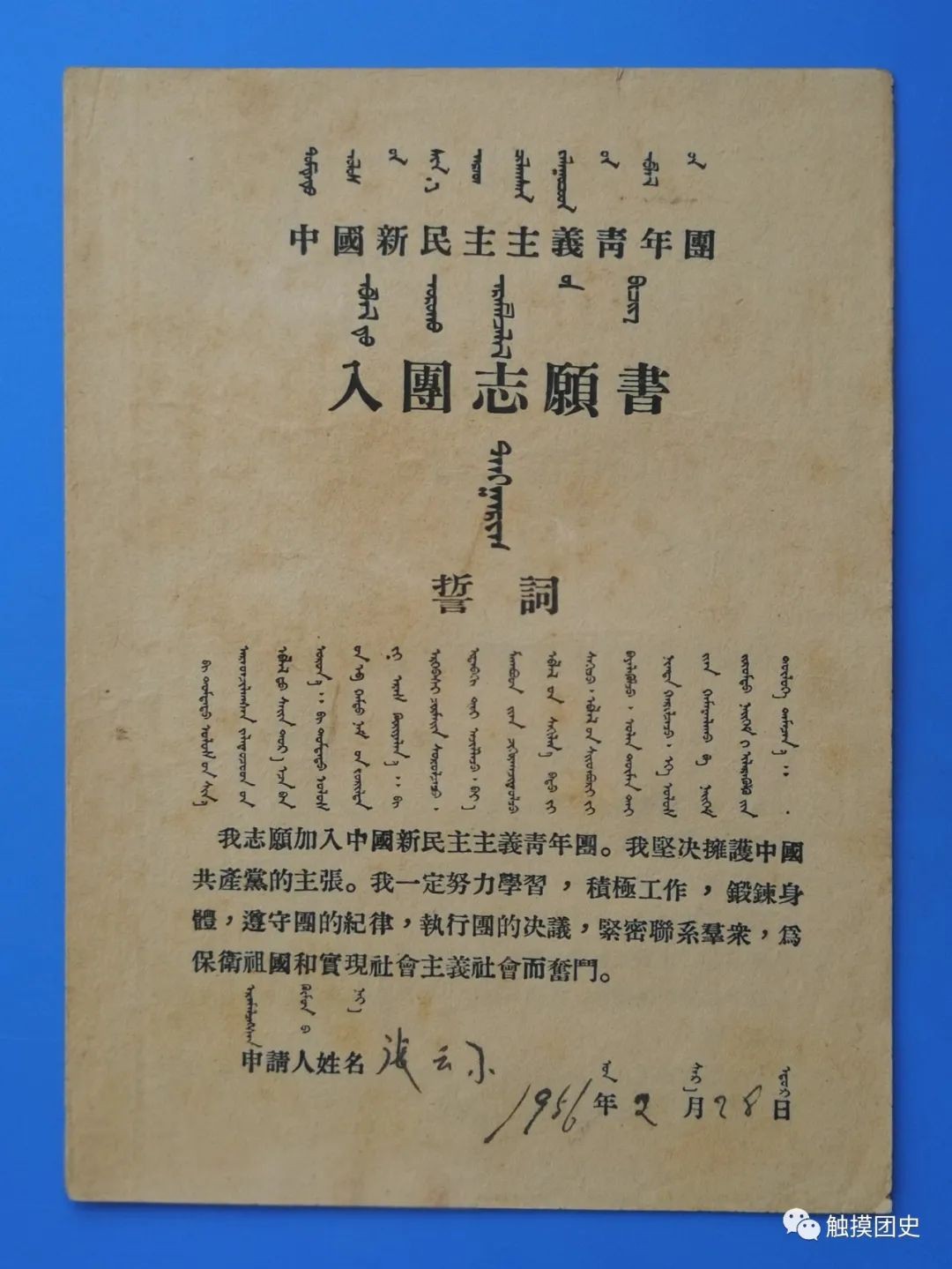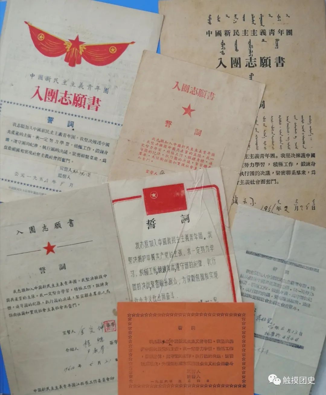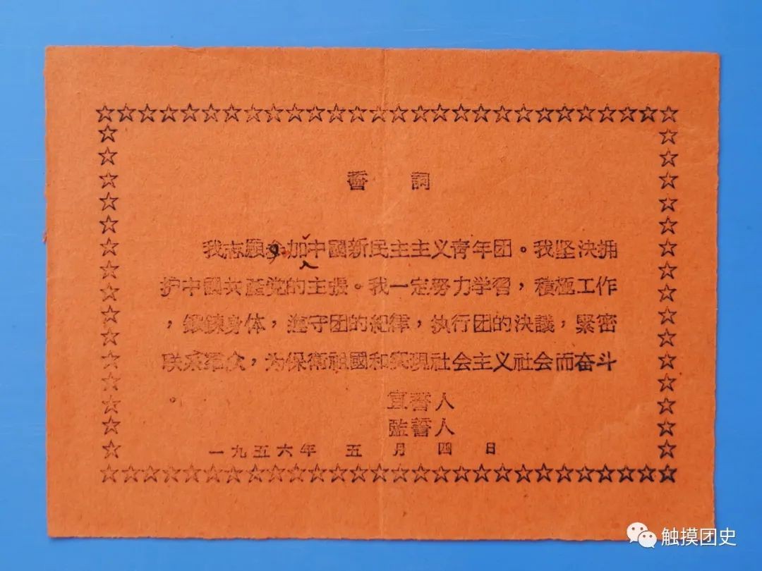 这些《入团志愿书》上的《入团誓词》,以及单独印制的《入团誓词》,都是第二版《入团誓词》。