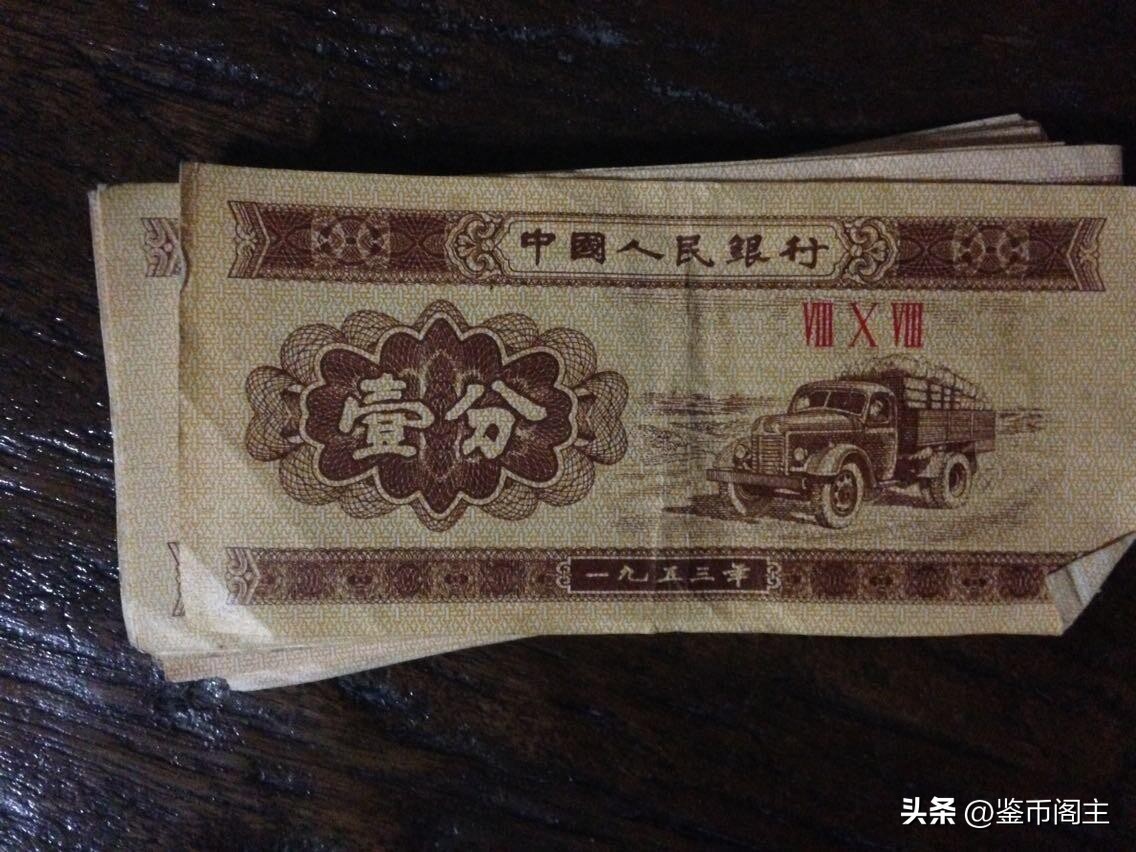 1953年发行的一分钱纸币(带阿拉伯数字编码)价格普遍较高,市场价格正常在200-300元之间,因为存量少,市场上很难看到;但是补印版(没有阿拉伯数字)没那么值钱,值几块钱,一般不受收藏家欢迎。