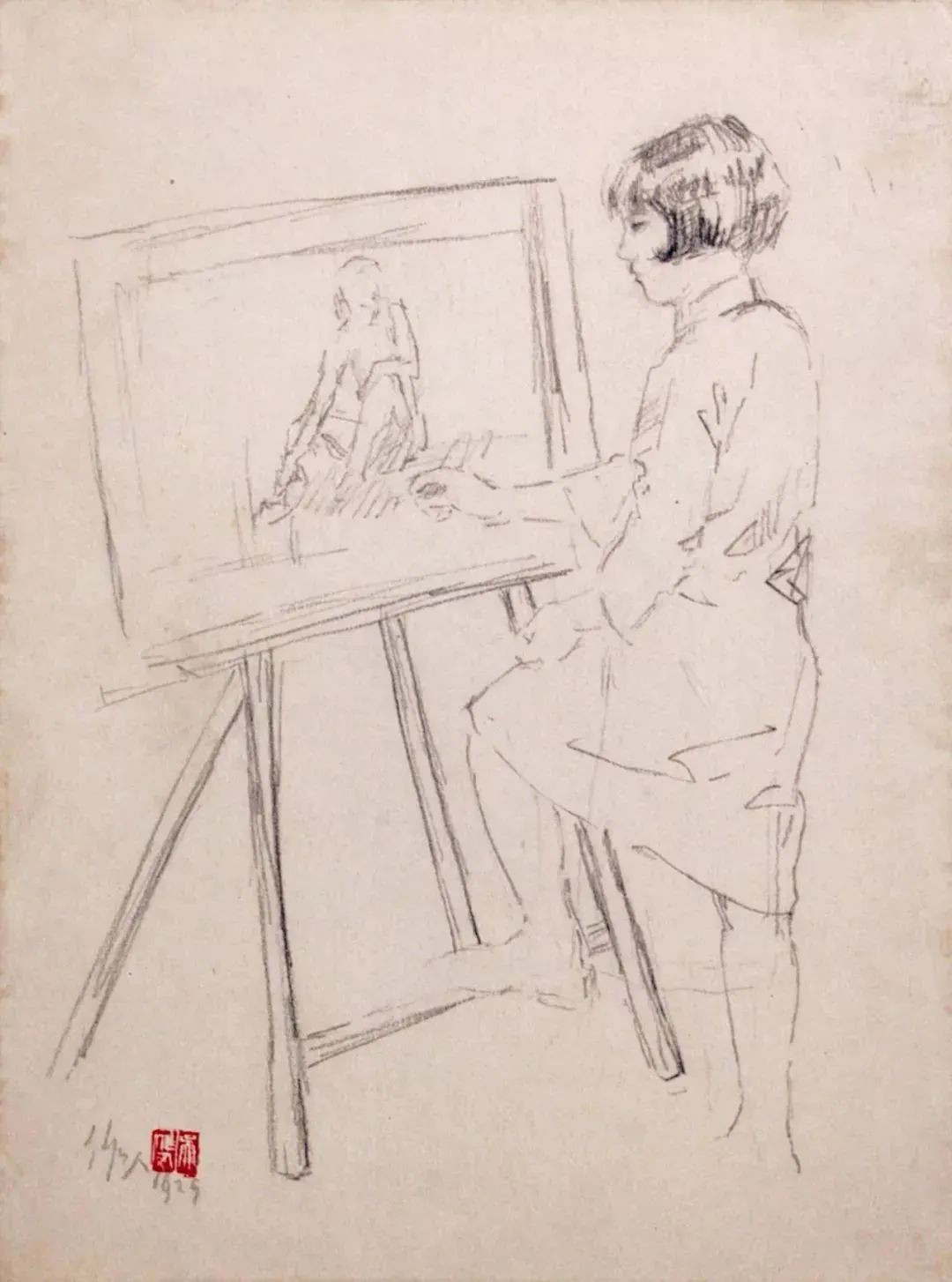 吴作人《萧淑芳在课堂上》,1929年