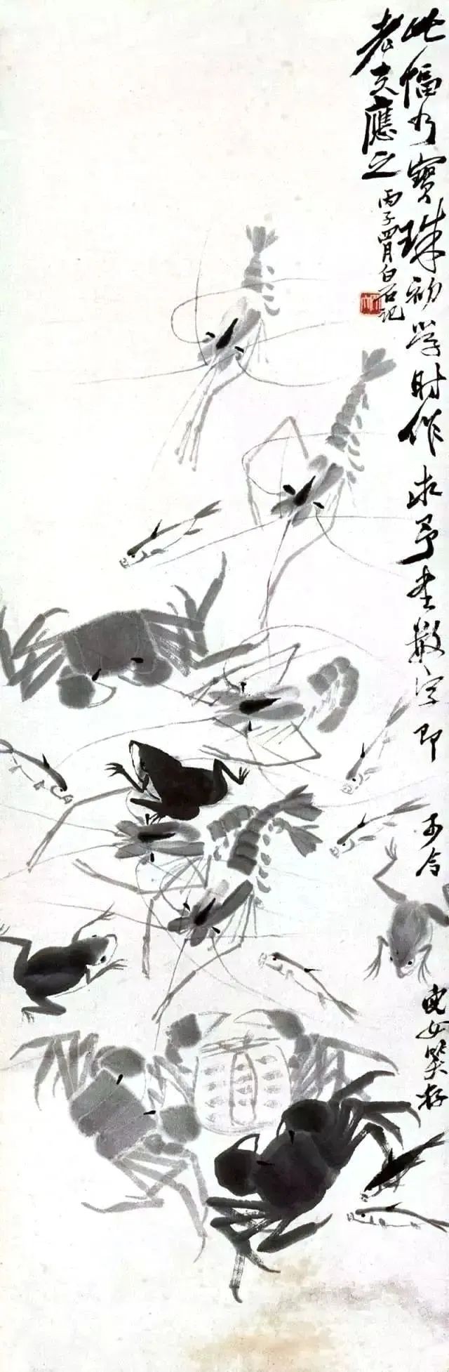 得知齐白石的顾虑后,胡宝珠毅然放下了画笔,转而专注于家务和照顾齐白石,两人恩爱有加。1934年,当齐白石年满七十时,胡宝珠为他生下了第六个儿子齐良年,齐白石非常高兴,特意画了一幅《蛙趣》送给夫人,寓意着生命的延续和家族的兴旺。