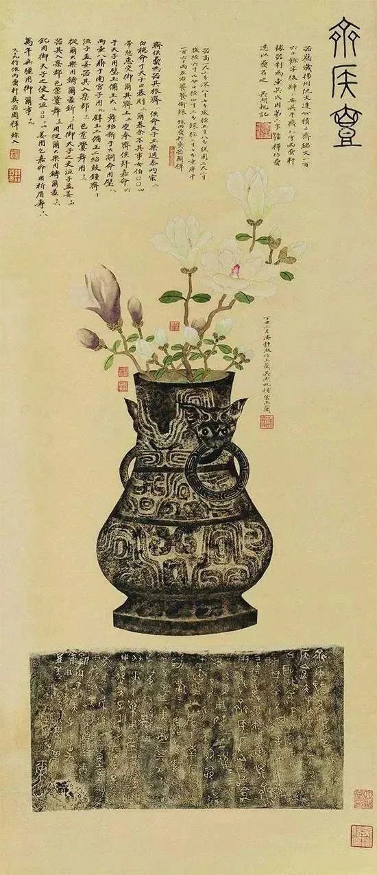 吴湖帆、潘静淑《齐侯壶拓片补玉兰》