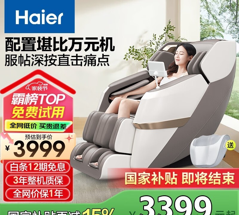 海尔H3-317-WU1按摩椅的性价比非常高,3千元出头的价格,其配置堪比万元机型。