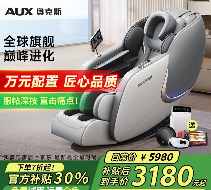 奥克斯按摩椅主打性价比,也是这次推荐清单里价格最便宜的一款,不过它的配置也是相当齐全的。