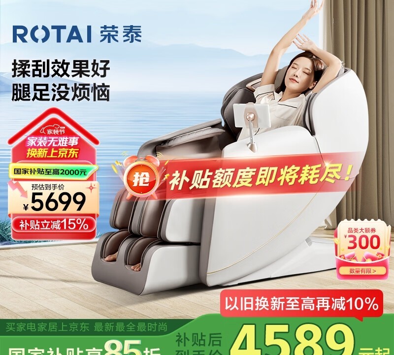 此外,荣泰S56升级了自动揉搓小腿、360度顶刮腿肚、创新足底刮痧轮设计,为用户带来深层次的按摩体验。