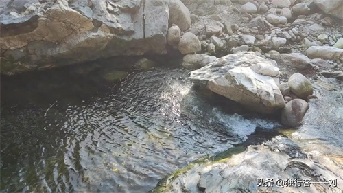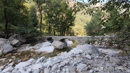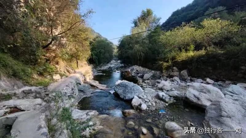 从峪口保护站到莲花沟入口,大约9.8公里,从这里下到河道,过桥可上南佛寺、莲花洞。