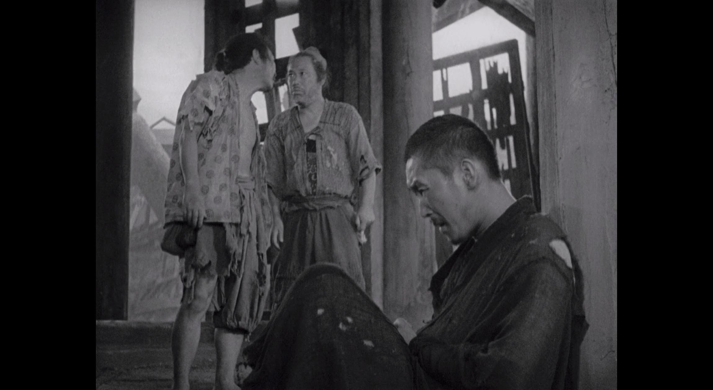 在《罗生门》电影结尾,乞丐、僧侣和樵夫发现了一个婴儿。看到婴儿身上名贵的衣服,乞丐立刻夺走婴儿的衣服,使听完“竹林中”故事的僧侣十分失望。这时樵夫又伸手想接过婴儿,僧侣以为樵夫连婴儿的裹身布也想抢走,樵夫连忙解释自己养育了六个孩子,只是想收养这个弃婴。