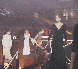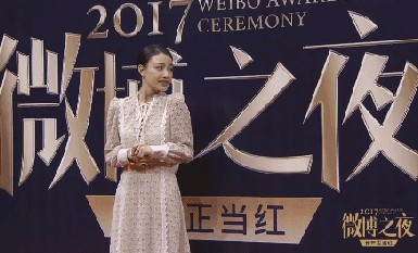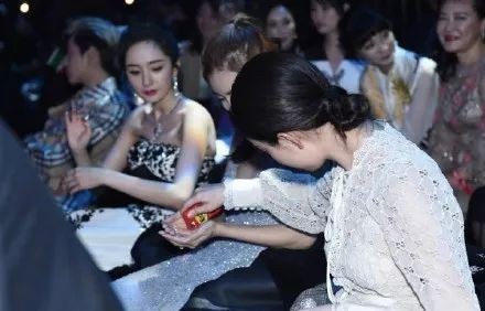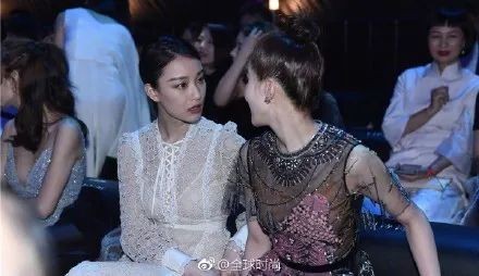 刘诗诗上台的时候,还回头看一眼倪妮,确认她没事才继续往前走。