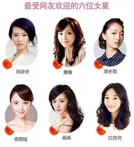 当时在网络票选活动中,刘诗诗、唐嫣、周冬雨、佟丽娅、杨幂和白百何入选最受网友欢迎的女星前列。