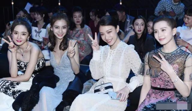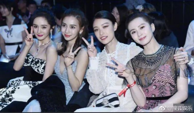 昨日,杨幂、Angelababy、刘诗诗、倪妮在某活动中合体,同排而座亲密合影,四个人齐齐比出V的手势,笑容甜美,身材吸睛。