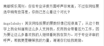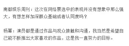 评选结果出来后,杨幂得知自己网络票选没有想象那么强大,她还鞭策自己要推出大家喜欢的作品。