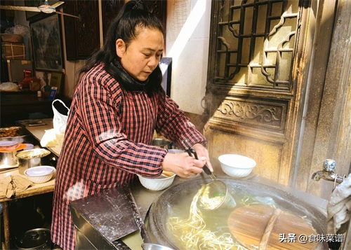 这种独特的制作方式,使得面条软硬恰当,柔韧性好,口感独特,锅盖面的历史悠久,是镇江人民世代相传的传统美食。