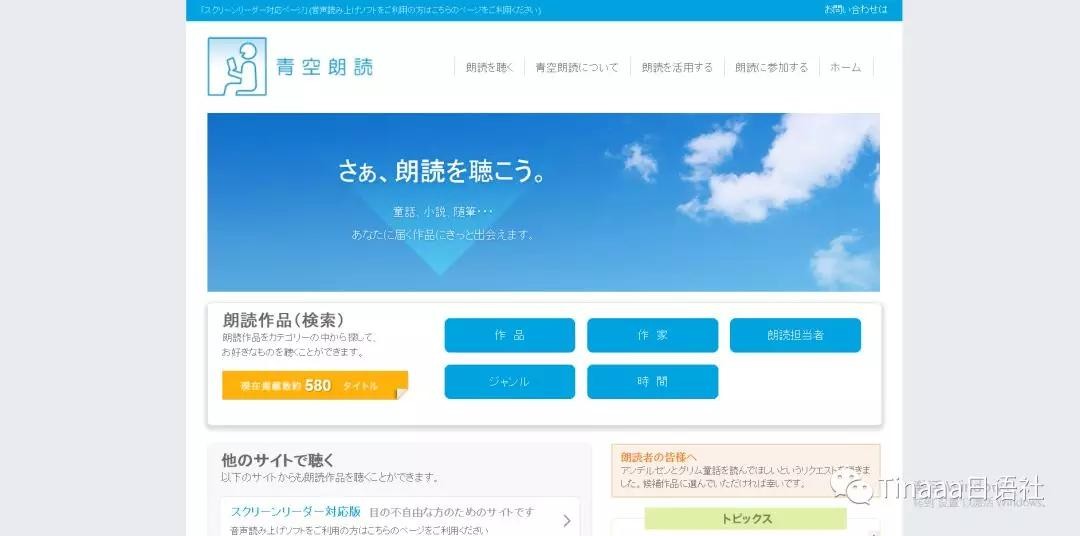 多是名家名作的素材,如夏目漱石、川端康成等,且由日本人朗读。时长从一分多到几十分钟。是磨耳朵的好东西。