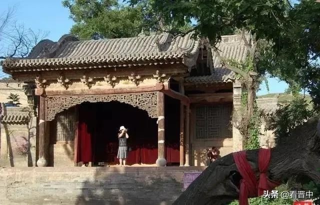 古戏台古称乐楼、乐亭,是酬神娱人的场所。这是一座前棚后殿的砖木结构古建筑。其前后衔接自然和谐,造型稳重大气,吊柱暗悬,斗栏明纹,檐角平缓,耳墙朴实,砖、石、木三雕俱精,卷棚顶弧线优美。有较高的艺术价值和实用价值。古戏台始建年份不祥,但从其遗存的部分构件工艺看,当不晚于清乾隆朝,清咸丰七年(1857)重修,文革初期“大破四旧”中曾遭部分损坏,2005年5月重修。