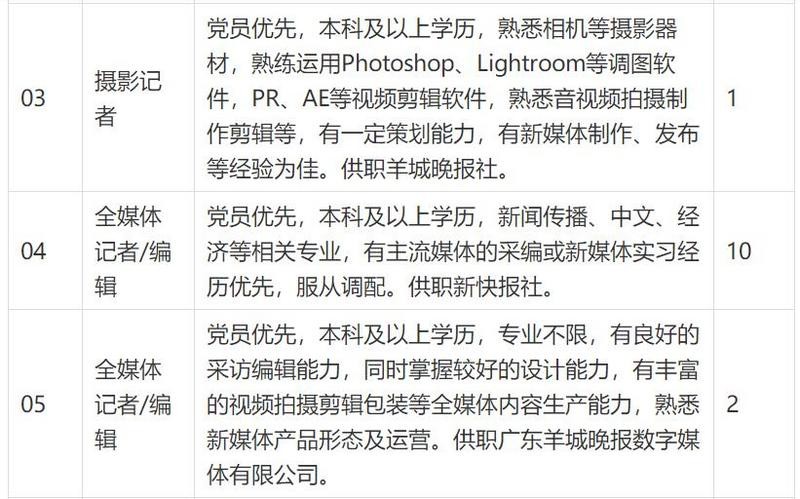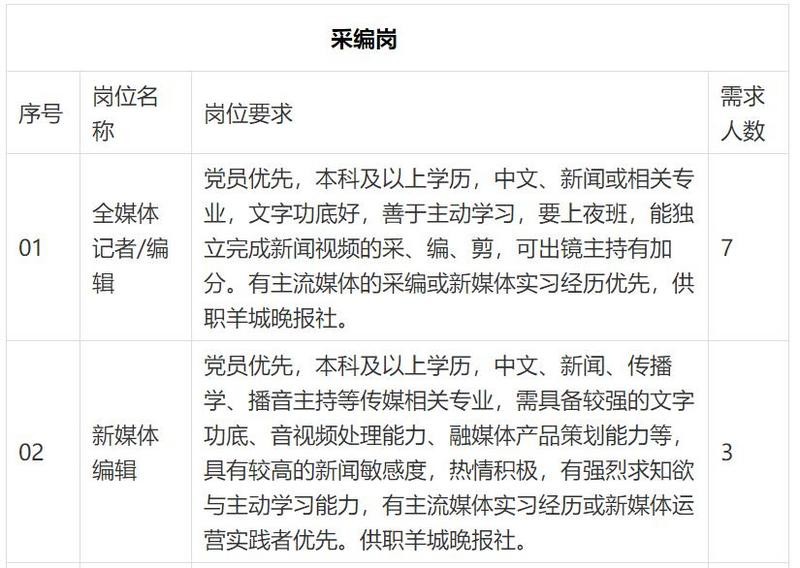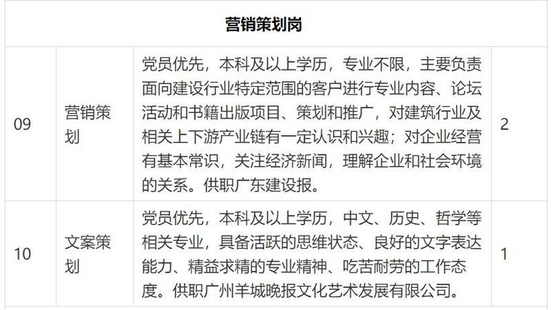 羊城晚报报业集团2021年度计划校园招聘31人,涵盖采编、营销、运营三大类别(详见校园招聘职位表↓↓)