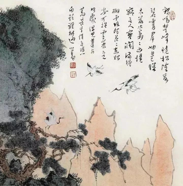 他曾经收藏一件明代早期佚名画家的山水手卷,细丽雅健,风神俊朗,全是北宗家法,一种大气清新的感觉满布画面,溥心畲学习了此卷的笔法,因此他的用笔挺健劲秀,真所谓铁划银钩,将北宗这一路刚劲的笔法──斧劈皴的表现特质阐发无馀,并兼有一种秀丽典雅的风格,再现了古人的画意精神。