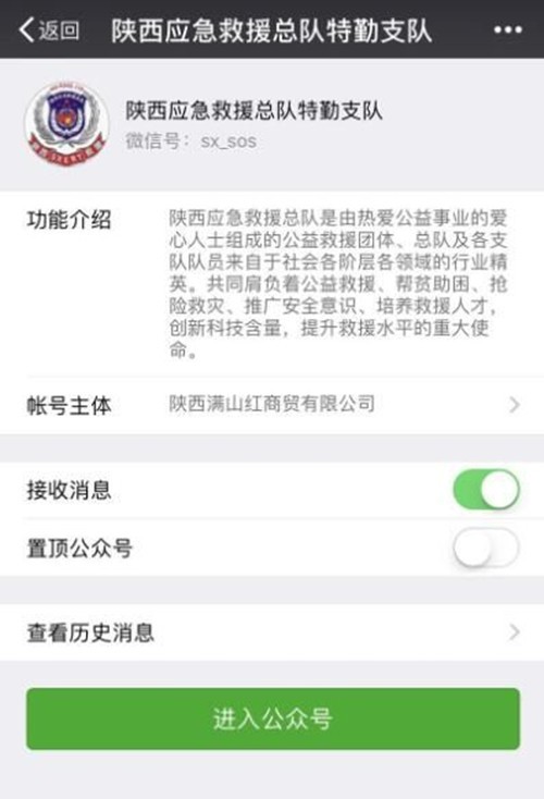 民间组织“陕西应急救援总队特勤支队”微信公众号