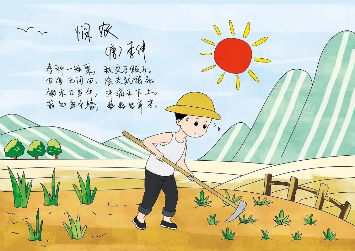 3. 《观刈麦》- 白居易田家少闲月,五月人倍忙。夜来南风起,小麦覆陇黄。白居易的《观刈麦》以其细腻的笔触,描绘了农民在炎炎夏日收割小麦的辛勤劳动。诗中那“足蒸暑土气,背灼炎天光”的描写,让我们仿佛置身于那片金黄的麦田之中,感受到了农民的艰辛与不易。这首诗不仅让我们更加珍惜粮食,更让我们深刻体会到劳动人民的伟大与崇高。