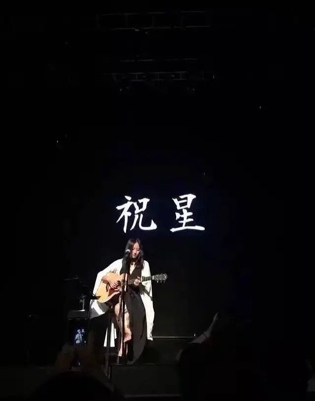 后来,在西湖音乐节上忽然宣布“我女朋友明天就要出国了,从来没有分开过那么远。”带着不舍的感情,陈粒又一次赤脚,抱着吉他演唱《祝星》。