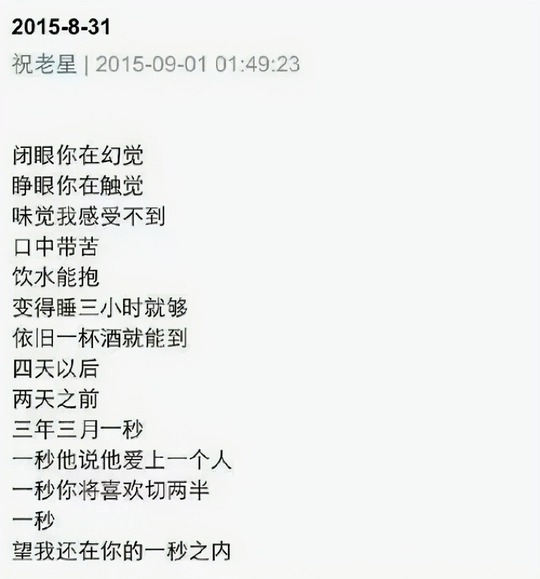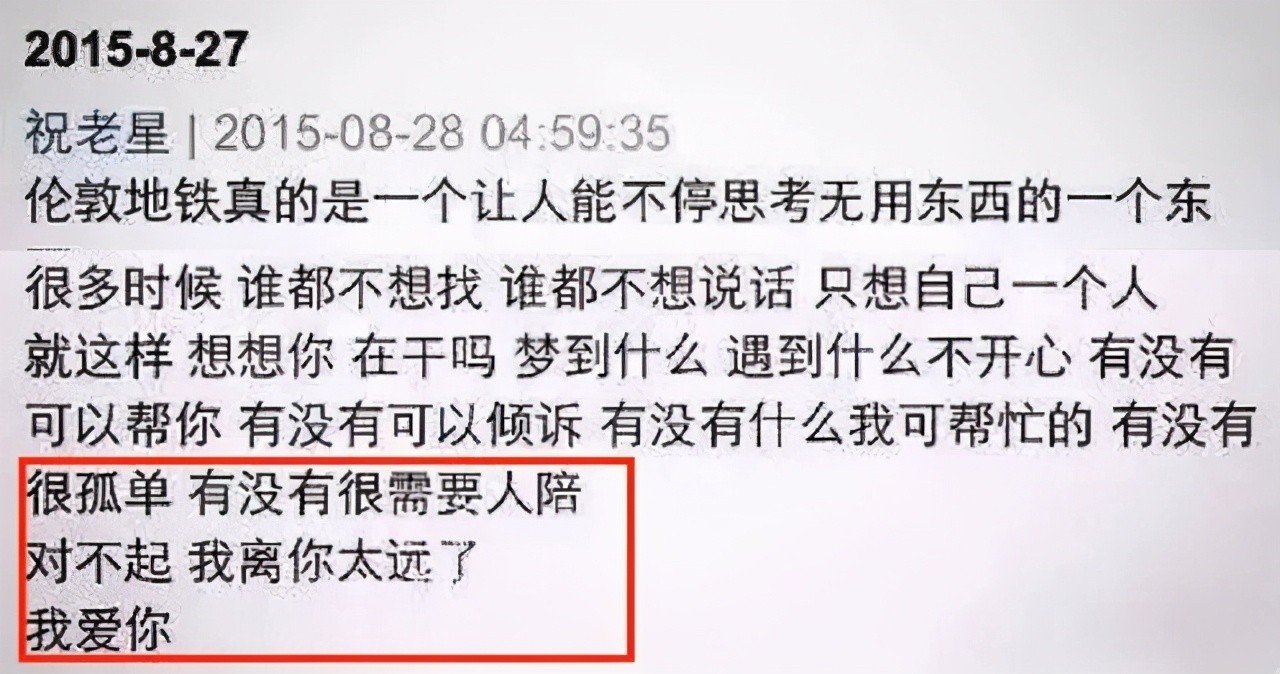 8月底,祝星发出动态表达对陈粒的思念,与不能陪伴的愧疚。