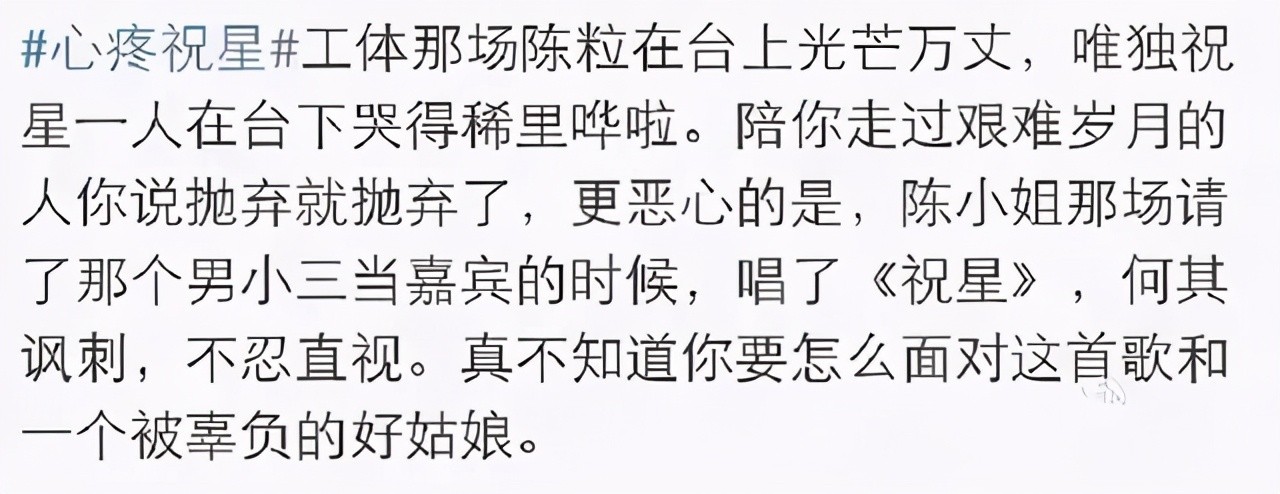 后来就在祝星留学归来满怀期待时,陈粒却拖友人表示分手。陈粒也在wb大方表示自己出轨。