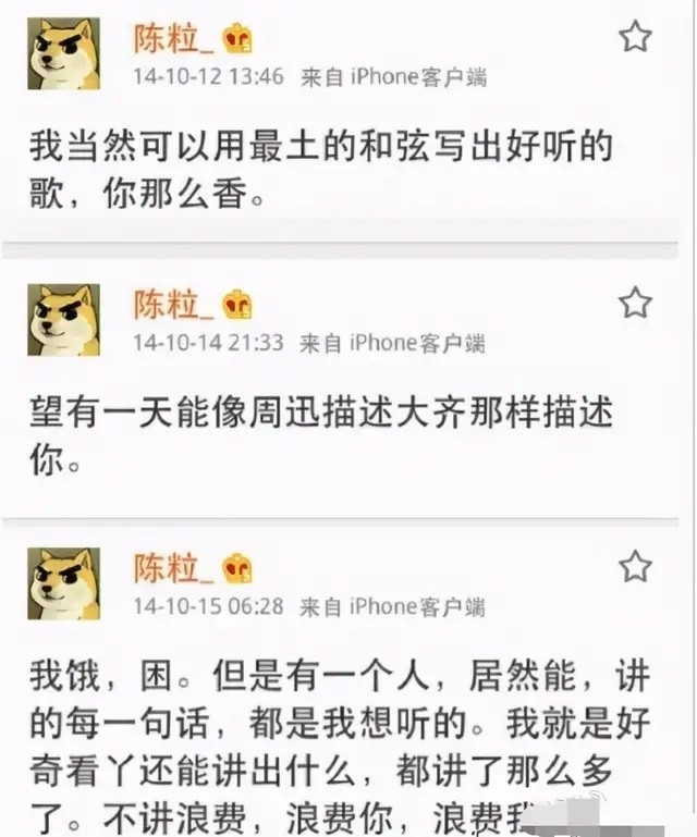 相爱以后,陈粒的每条wb下面都有祝星的评论,而祝星的wb全是有关陈粒。