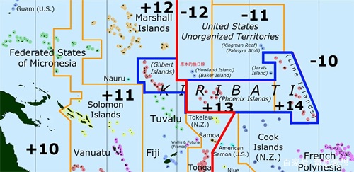 举个例子,太平洋岛国基里巴斯原本横跨三个时区,但是刚好处于换日线中,只好提前两个时区,以便全国处于同一个日期。