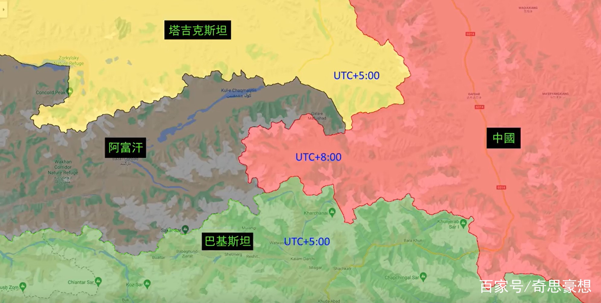 但我国西部的地区确确实实比北京相隔两个小时的时区,西藏和新疆的太阳往往早上10点才升起,于是在新疆的维吾尔族为了调整作息,往往会把时间挪后两个小时,在新疆的最西端最靠近中国与巴基斯坦的边界,北京标准时间不被实际运用,甚至公交车时刻表也会使用非官方时间。例如他们会11点上班,3点午餐、10点晚餐等,但居住在新疆的汉族人还是会以北京时间为生活基准,构成这般一个地区两个时期的特殊现象。值得一提的是,只要越过阿富汗的边界,就可以立刻把时钟拨回三个半小时。