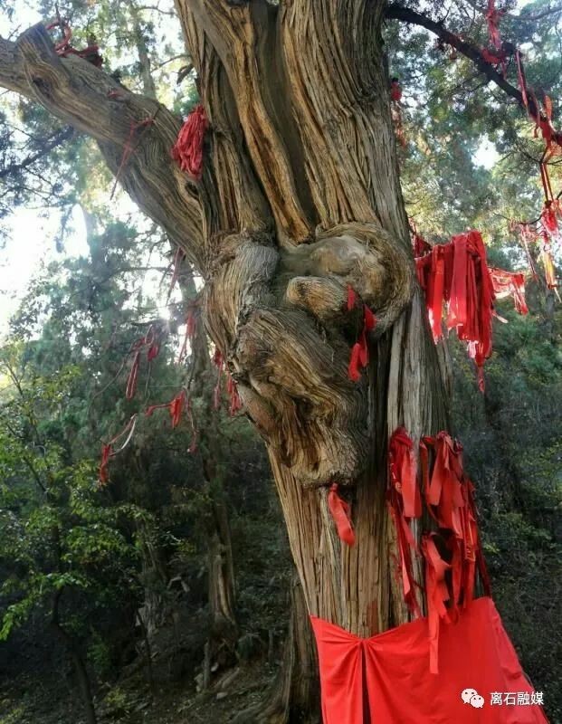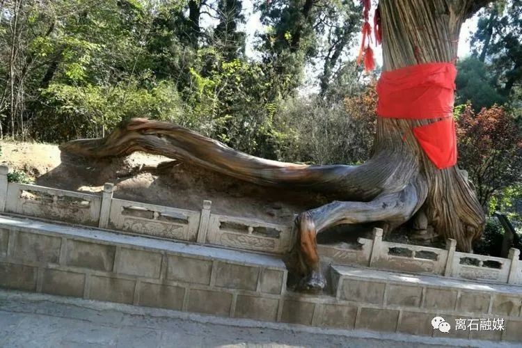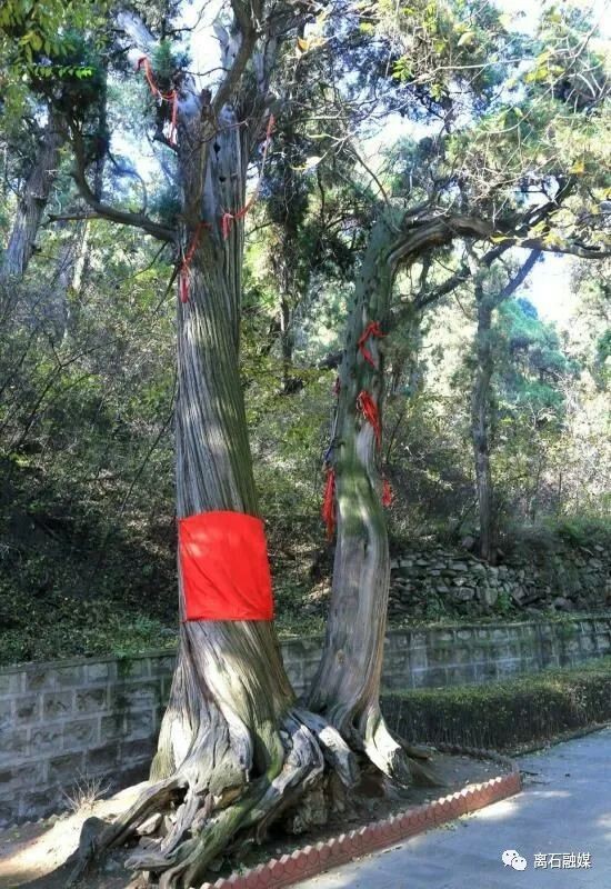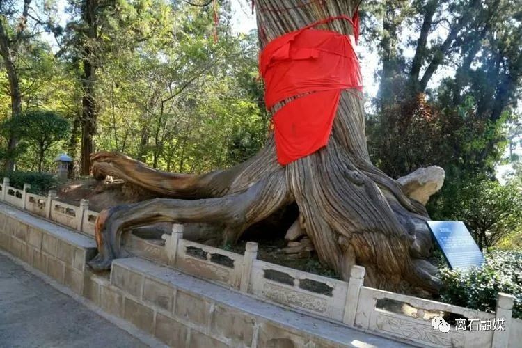 牛头柏:根部树围1.07米,该树西南裸露着树根,形似牛头,双角弯曲有致,门面广阔扁平,朗目微睁,其头圆乎乎、胖墩墩、毛茸茸,悠然处得憨态可掬。
