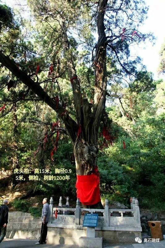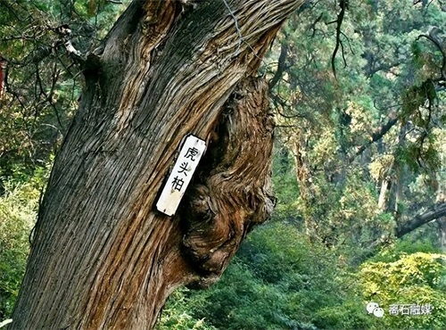虎头柏:树干上有一个瘤球,形似虎头俯瞰来往游客,故名。
