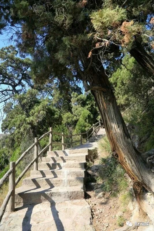凌晨6时,我从“卦山宾馆”出发,徒步前往卦山景区。沿着进山的柏油马路,一路轻松上行。沿途所见,晨练的人们三五成群,一拨又一拨,个个精神抖擞,人人疾步朝着卦山腹地行进。盛夏的早晨,虽有寒意袭人之感,但令人神清气爽。抬眼望去,崇山峻岭,松柏苍翠,楼堂殿阁,隐约可见,宛如仙境。大约行进500米,远远地就看见卦山半道厅巍然屹立,走近细观,彩色琉璃布瓦悬山顶,面阔三间,进深四椽,厅门正中央悬挂着华国锋同志亲笔题名的“山形卦象”横匾。过半道厅,前行不远处,环翠厅坐落于沟壑之边缘。依山就道前行,苍松翠柏环绕期间,抬头远望,对面山上华严宝塔赫然在目,白塔掩映在绿树丛中,美不胜收,煞是诱人。