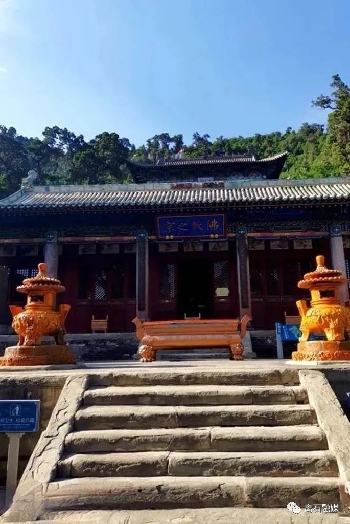 继续而上,我便来到后院毗卢阁,重建于清康熙四十七年(1708年)。斗拱飞檐,五脊六兽,雄伟壮观,阁体明看是三层实有二层,下层四面檐柱,中层四面围栏,阁内上下层置木楼板,有木楼梯可登,为纯木式结构。殿中雕刻精细的大型佛龛之内有跌坐木雕佛像三尊,两旁有摩诃迦叶和阿难陀侍立。