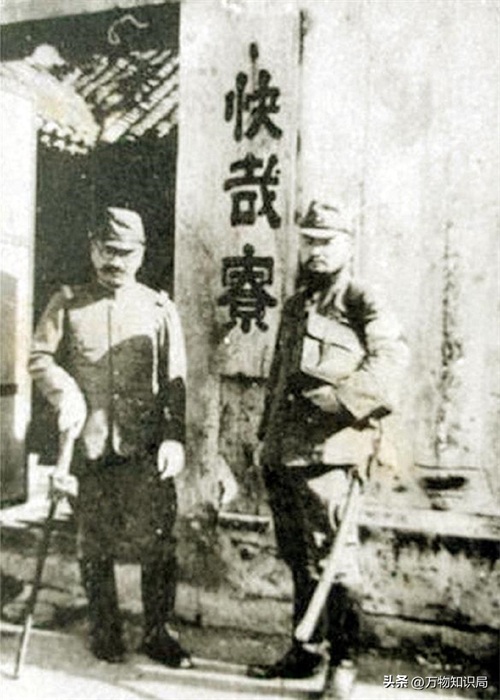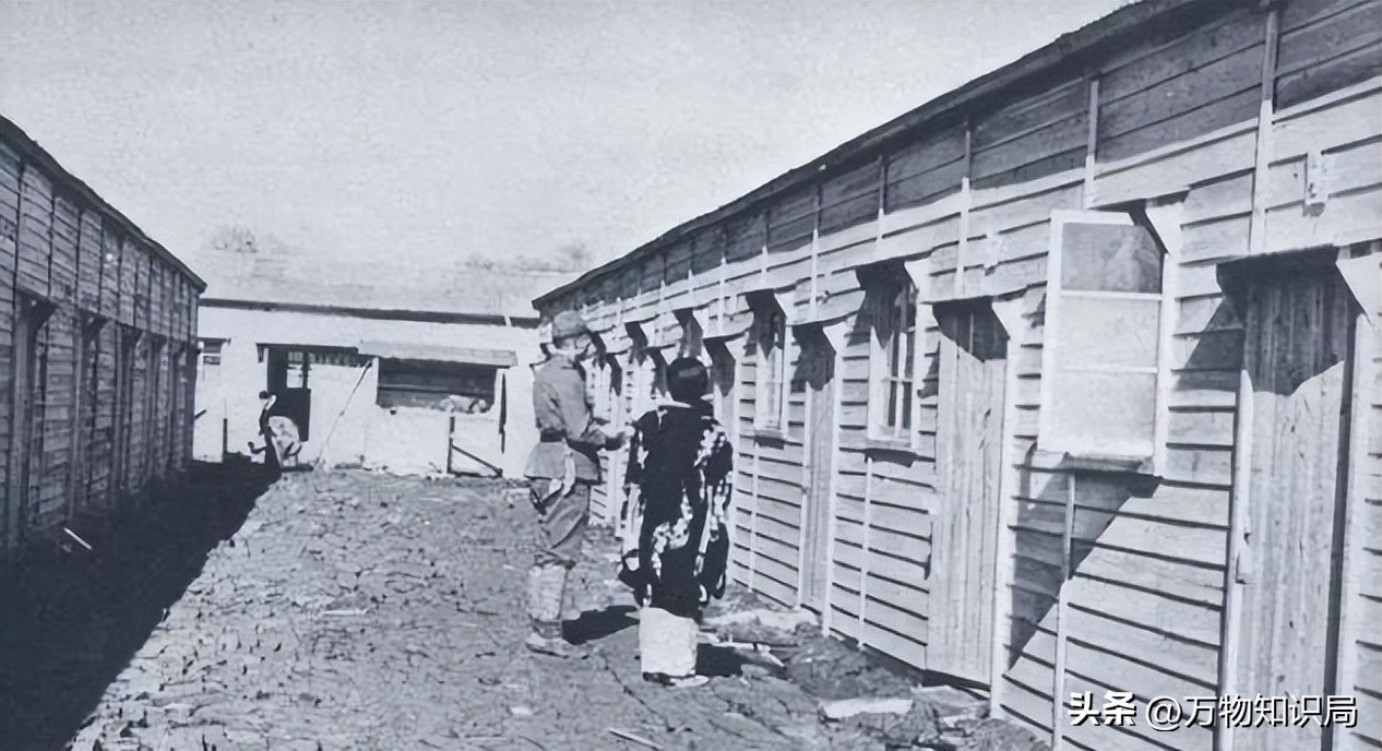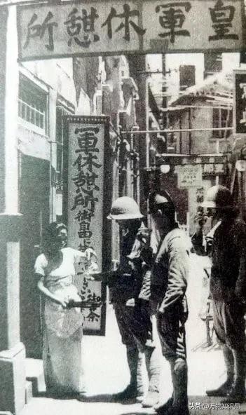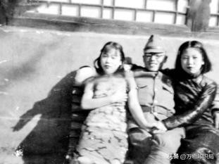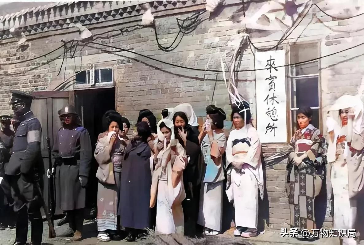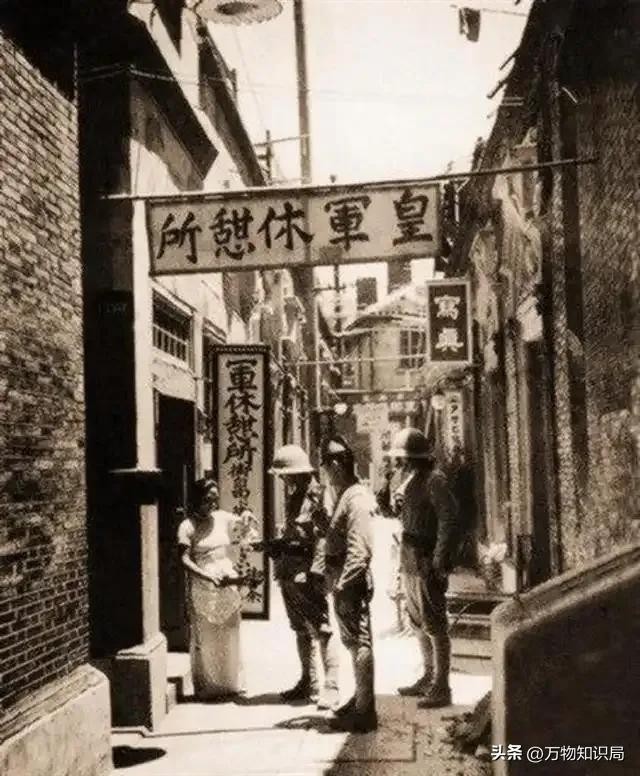 在照片中可以看到三名日军站在慰安所的外部,他们可能是慰安所的管理人员或者日本军队的士兵,他们身着日本军服,站得笔挺,表情严肃,展现出一种军人的纪律和威严,可谓是一群衣冠禽兽。