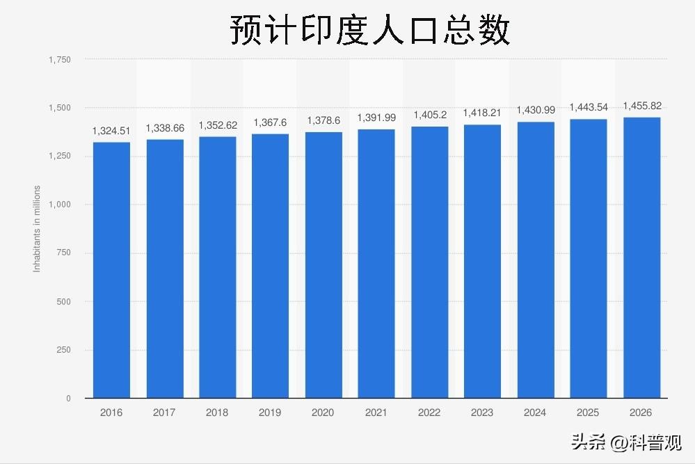并且值得一提的是,从人口变化曲线不难看出,印度人口的增长趋势非常稳定,一直保持着稳定高速的增长。