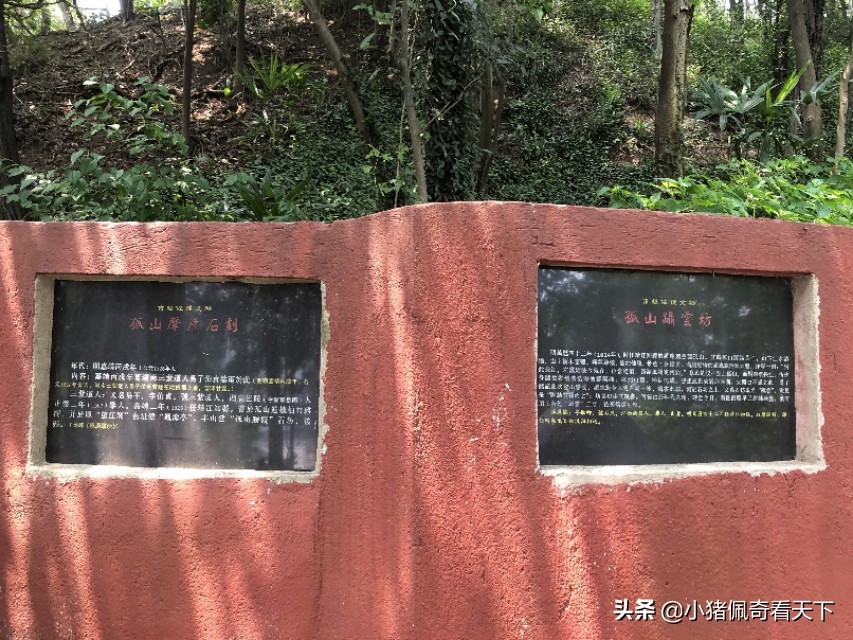 明正德元年(一五零六)始,孤山上陆续建成以孤山寺为中心的建筑群。据史料记载,当年沿孤山南坡拾级而上,半腰有一座“蹑云”石坊,两边石柱刻有楹联:对此长江左蠡烟波今宛在,位当绝顶西湖风月定何如。题额和楹联均为明万历四十二年(一六一四)靖江知县手书。可见蹑云坊已有近四百年历史,是靖江城现存最早的石坊。坊下有摩崖碑刻“嘉靖丙戌年夏湖南三紫道人易子伯贞祷雨于此”,是明嘉靖丙戌年(一五二六)夏,湖南三紫道人易子伯贞在此祈雨的纪念。蹑云坊向东不远处,有关圣大帝祠,折转向西有土神祠,再向西转而向北为山门,门东有三茅真君祠,门西高坡为仙人台,古柏丛中有观音庵。正北有重门,进入重门到东岳行宫,是孤山寺的正殿。殿内有佛像百尊,金碧辉煌。