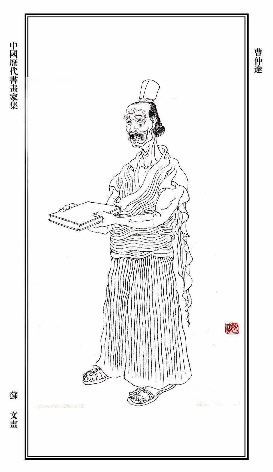 曹仲达作画画人物以稠密的细线,表现衣服褶纹贴身,“其体稠叠,而衣服紧窄”,似刚从水中出来,人称“曹衣出水”,与唐代画家吴道子的“吴带当风”画风并称画史。