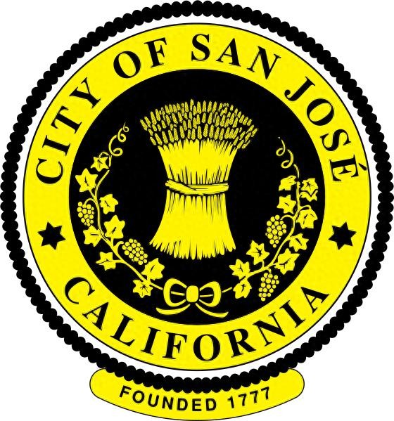 圣何塞的徽章也是城市的印章,中心是黑色的圆,上面是金色的小麦捆和用蝴蝶结绑在一起的葡萄,小麦和葡萄树象征着该地区的农产品,这是该地区在转向技术产品之前最大的产业。外边则是一个带有黑色大写字母“CITY OF SAN JOSÉ”(圣何塞市)和“CALIFORNIA”(加利福尼亚)的金色圆环。圆环外则分别是白色和黑色的带有锯齿状的边。印章下方附有一个椭圆形,上面写着“FOUNDED 1777”,这是城市建立的时间。印章于1850年9月9日正式采用。