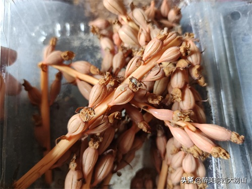 人工授粉以后的天麻花朵里就会长出种子来,山里人就是利用这些种子来繁殖天麻子的。