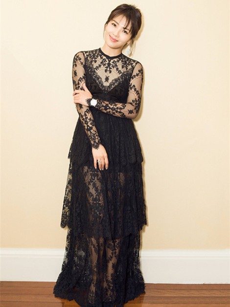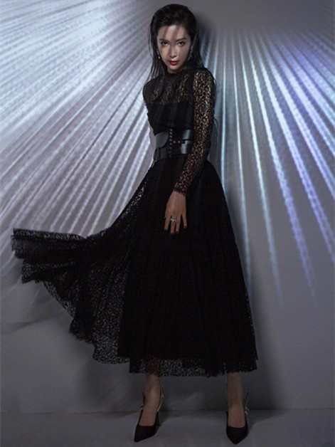 上图中的正是李冰冰,前些日子她现身了某活动,当天穿的礼服也是一件黑色蕾丝裙。
