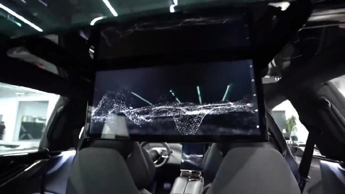 对后排乘客的照顾FF91也考虑非常周全,在车顶设计了一个大尺寸液晶屏幕,平时这块屏幕收起来,在观看时可以放下,享受家庭影院般的观影乐趣。