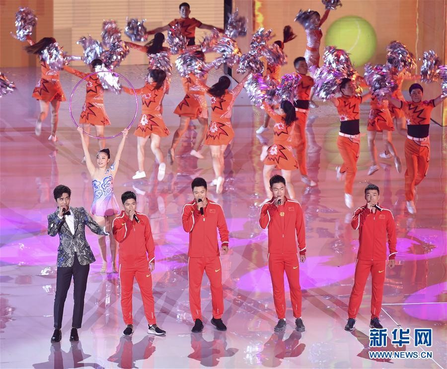 9月8日,游泳运动员徐嘉余(右)在闭幕式上演唱。当日,第十三届全运会在天津闭幕。 新华社记者岳月伟摄