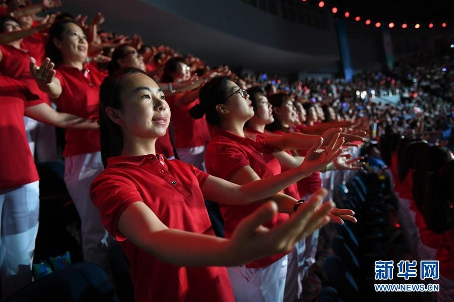 9月8日,合唱队在闭幕式上表演。当日,第十三届全运会在天津闭幕。 新华社记者陈斌摄