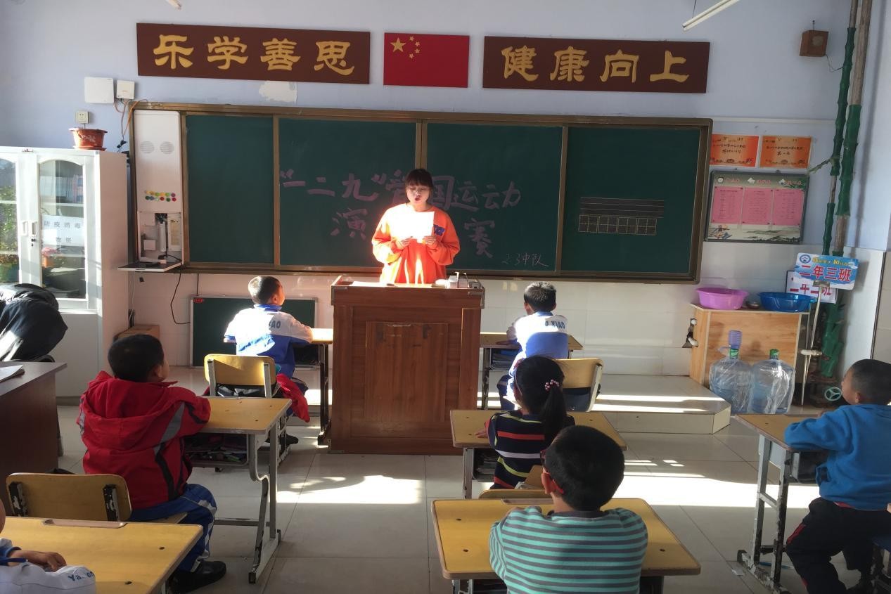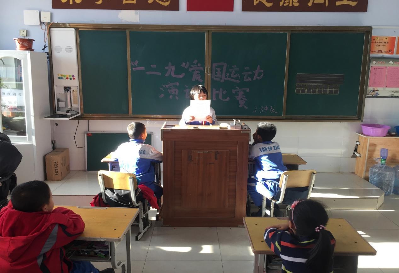 老党员李民老师在班级为学生讲解“一二九”运动的重大意义。学生们认真地听着,感受着历史的记忆。2年3班李文雪老师首先介绍了一二九运动来源,了解一二九运动背后的历史,宣布2年3班演讲比赛正式开始,学生们准备的特别认真,当演讲完,大家推选演讲冠军是汤雅祺同学。少先队辅导员问大家,你们的梦想是什么,学生纷纷举手,有的学生想当兵,保护国家,有的孩子,想当医生,把病毒消灭掉,孩子稚嫩的话流露出他们的梦想以及决心。最后辅导员在2年3班总结,同学们要努力学习,报效国家,振兴中华!从小事做起!希望大家通过此次活动,懂得今天幸福生活的来之不易,需要好好去珍惜,去建设社会,去为中国的建设贡献我们大学生的一份力量!