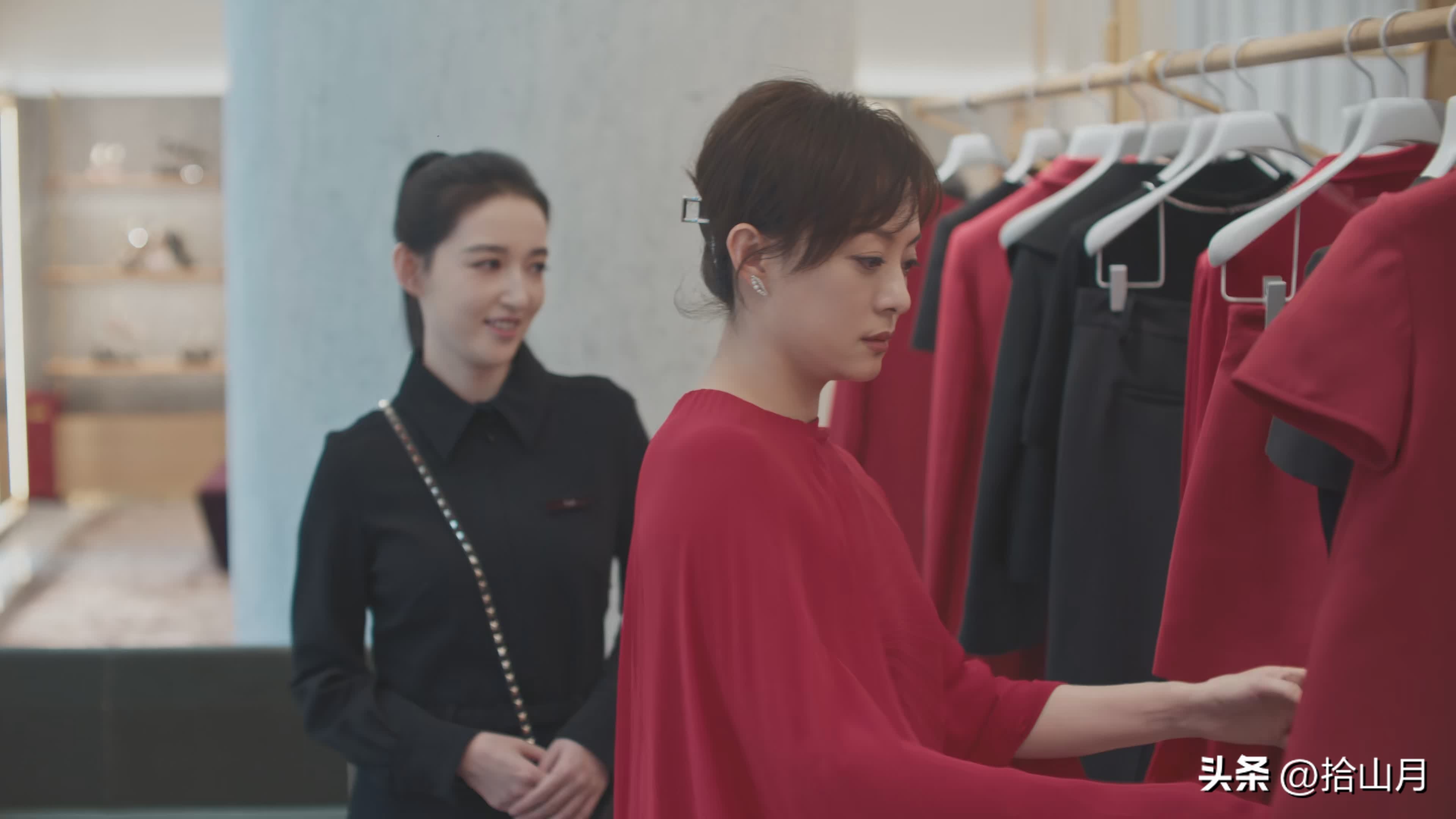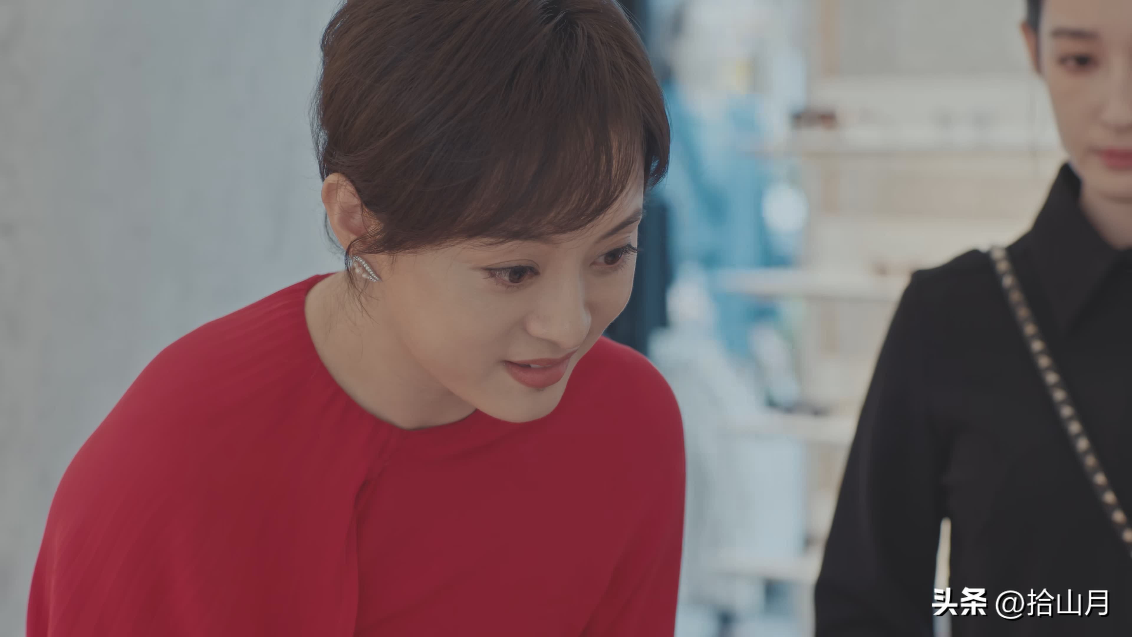 尤琪第一次出场,是胡曼黎到奢侈品店买衣服,她穿着一身正红色的衣服,要去对付小三,显示自己正宫的地位。看尤琪的话: