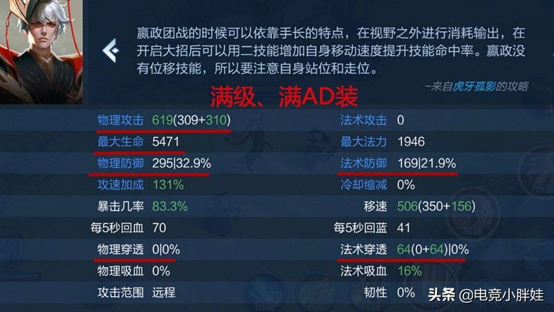 嬴政的被动技能是他能用物理攻击装的关键,这一点虽然跟梦奇的被动效果相似,但有一点很重要的是嬴政的物理攻击受出装影响,意思是如果嬴政没有出物理攻击装,那么中后期的普攻伤害会越来越低,特别是对一些坦克英雄。