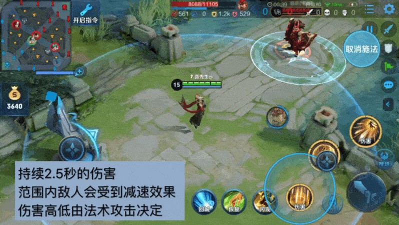 一技能召唤剑阵对范围内的敌人持续输出,并且还会减少敌人的移动速度,在对线期这样的持续伤害技能让敌方不敢一直输出,只能放技能往后走,而嬴政凭借着普攻跟技能优势,自然能轻松在对线期优先抢到2级,形成等级优势。