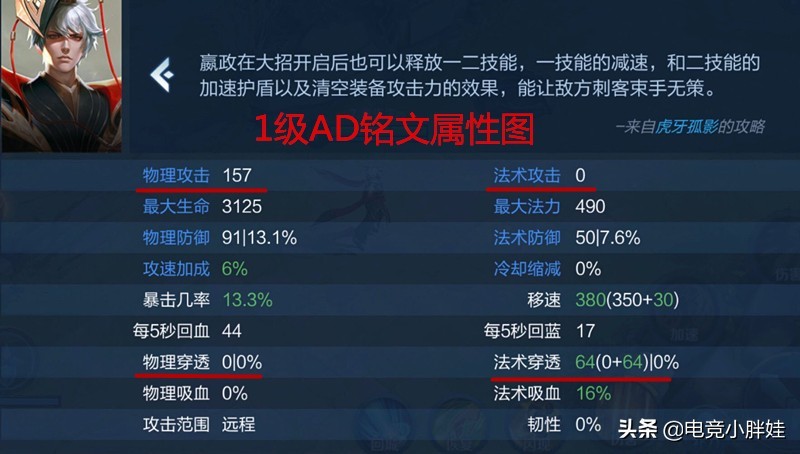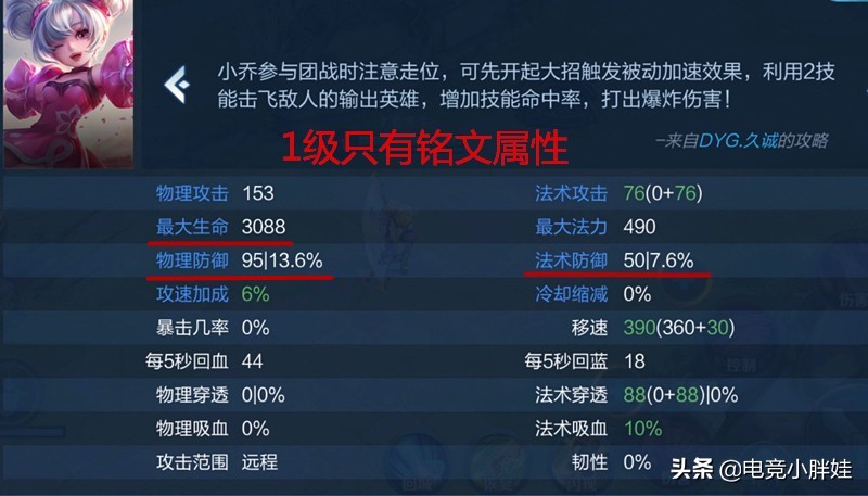 前期的小乔因嬴政有法术穿透,所以对于法术伤害基本上没有什么抵抗力,而上图中嬴政1级属性图,物理攻击157、法术攻击0、最大生命值3125,这时候同时计算一技能跟调整后的普攻伤害,看看小乔能坚持多久,对线期有多难。