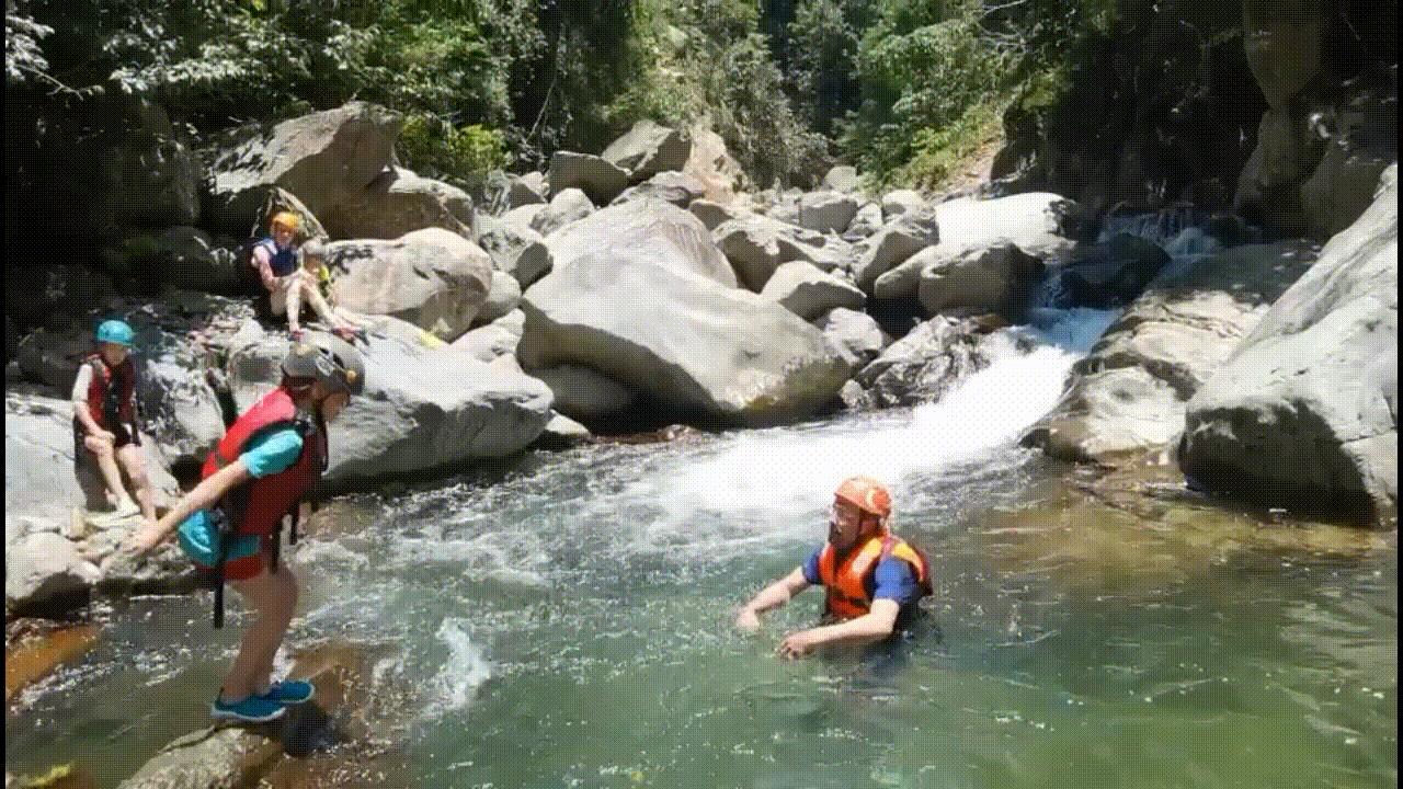 一定要穿好救生衣,有些地方溪流很急,