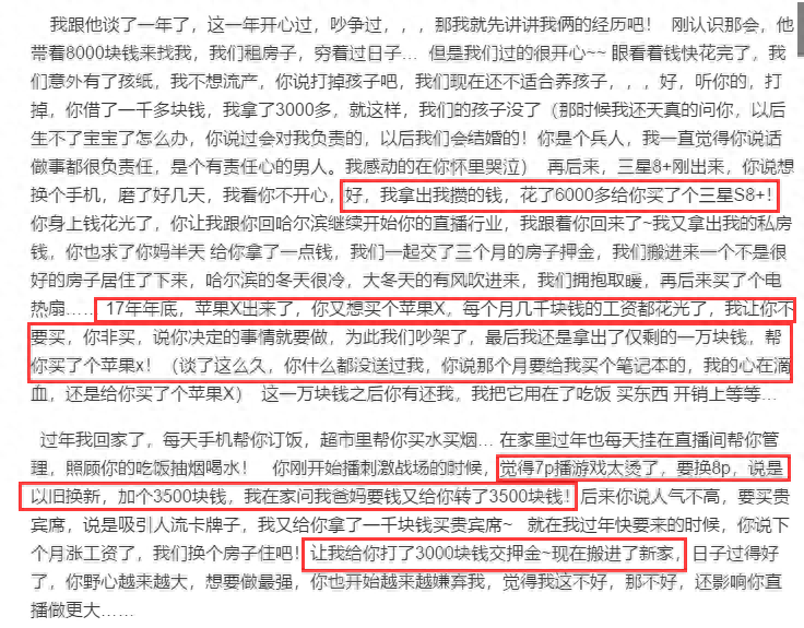 甚至不要脸的认为有女朋友的存在会妨碍自己的直播的光辉大道,但女方还是默默付出陪伴在渣男身边,